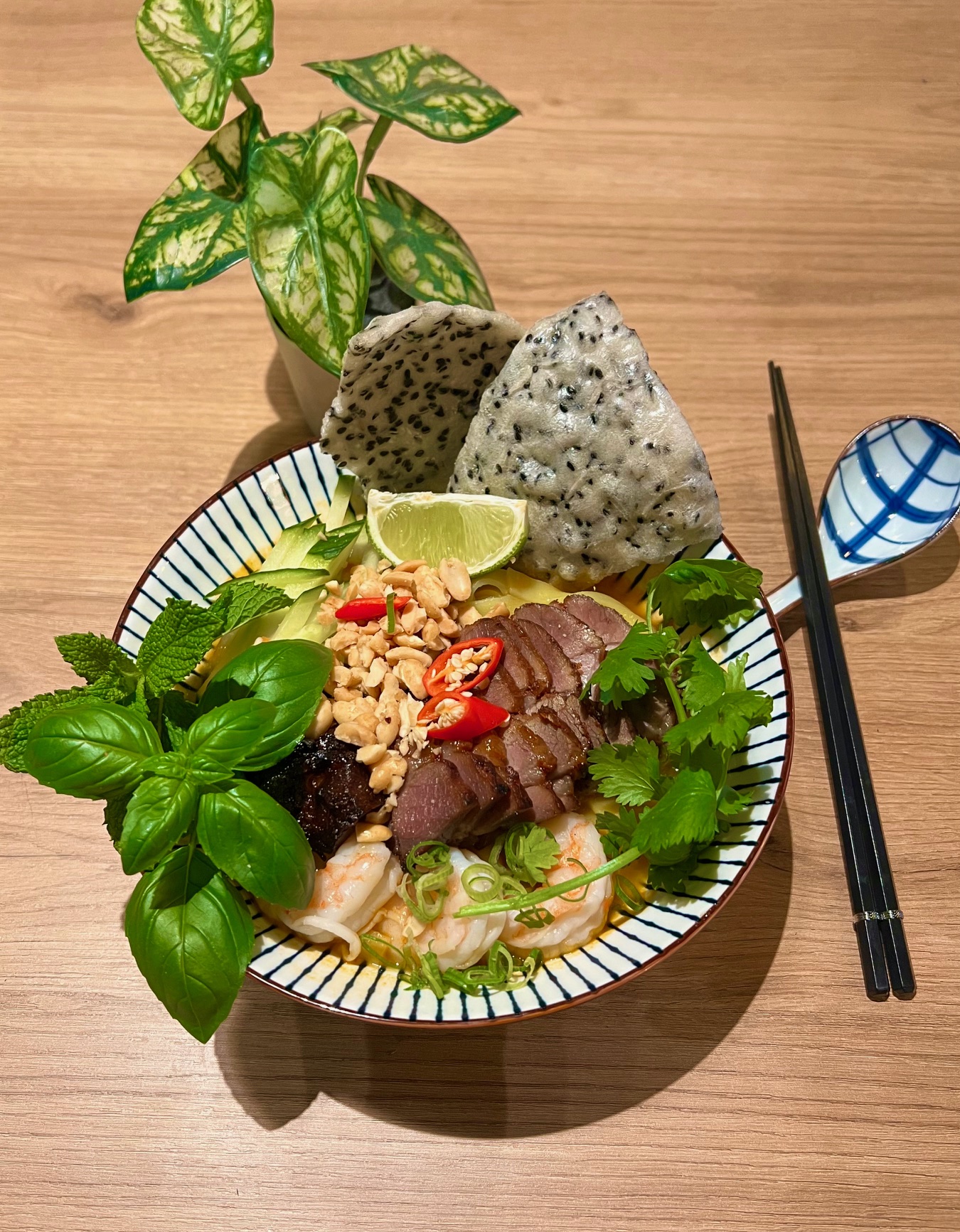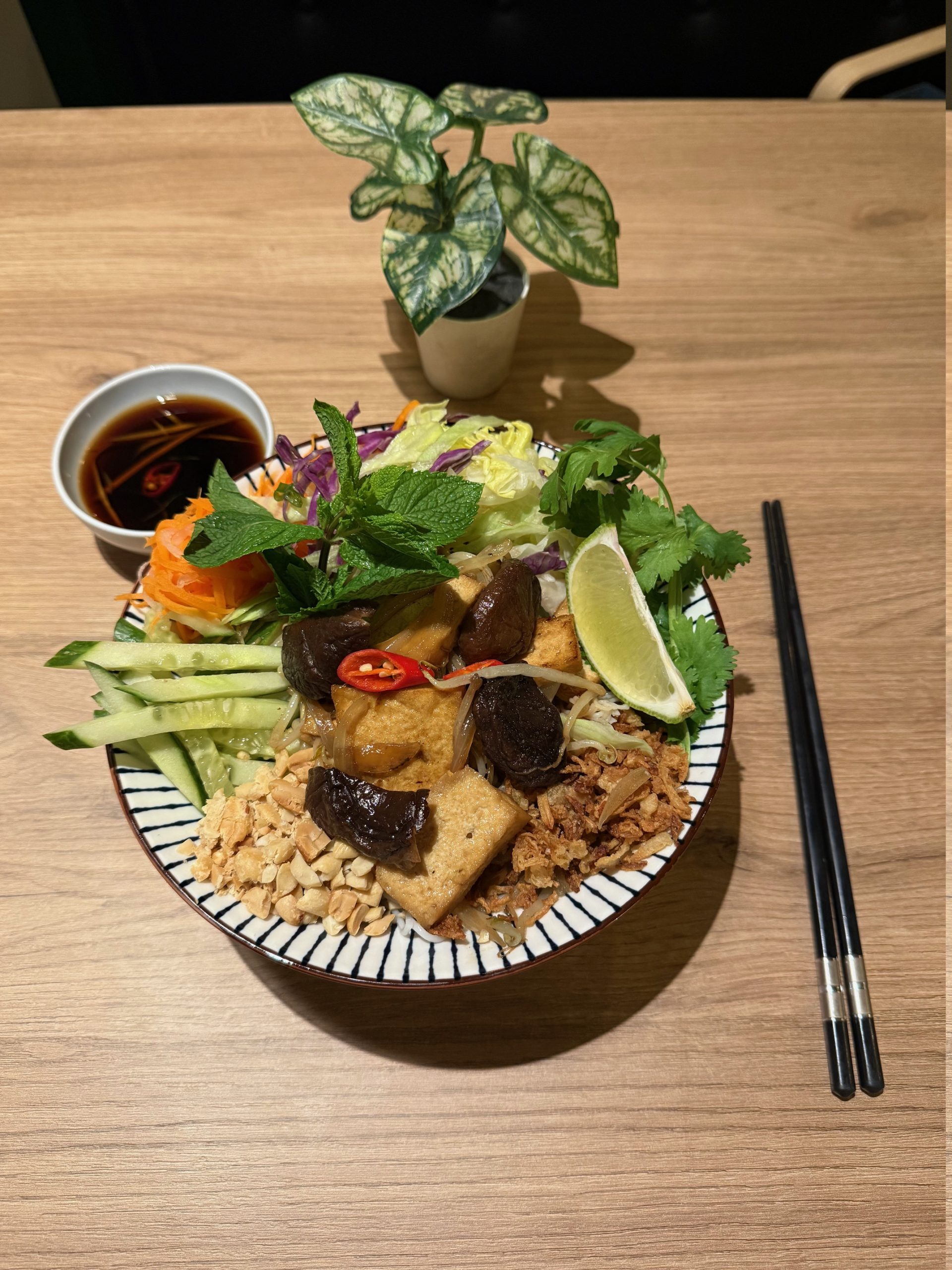 Vores menu byder på over 50 forskellige retter, og hver enkelt fortæller sin egen historie. Fra Vietnams gadekøkkener til sofistikerede bistroer bringer vi smagen til dit bord, hvor friske urter, aromatiske krydderier og kreative kombinationer mødes i skåle og retter, der giver dig et ægte glimt af vietnamesisk madkultur. Hos os finder du alt fra sprøde forårsruller og friske Goi Cuon sommerruller til den klassiske Pho nudelsuppe, duftende Bun vermicelli og farverige bowls.
