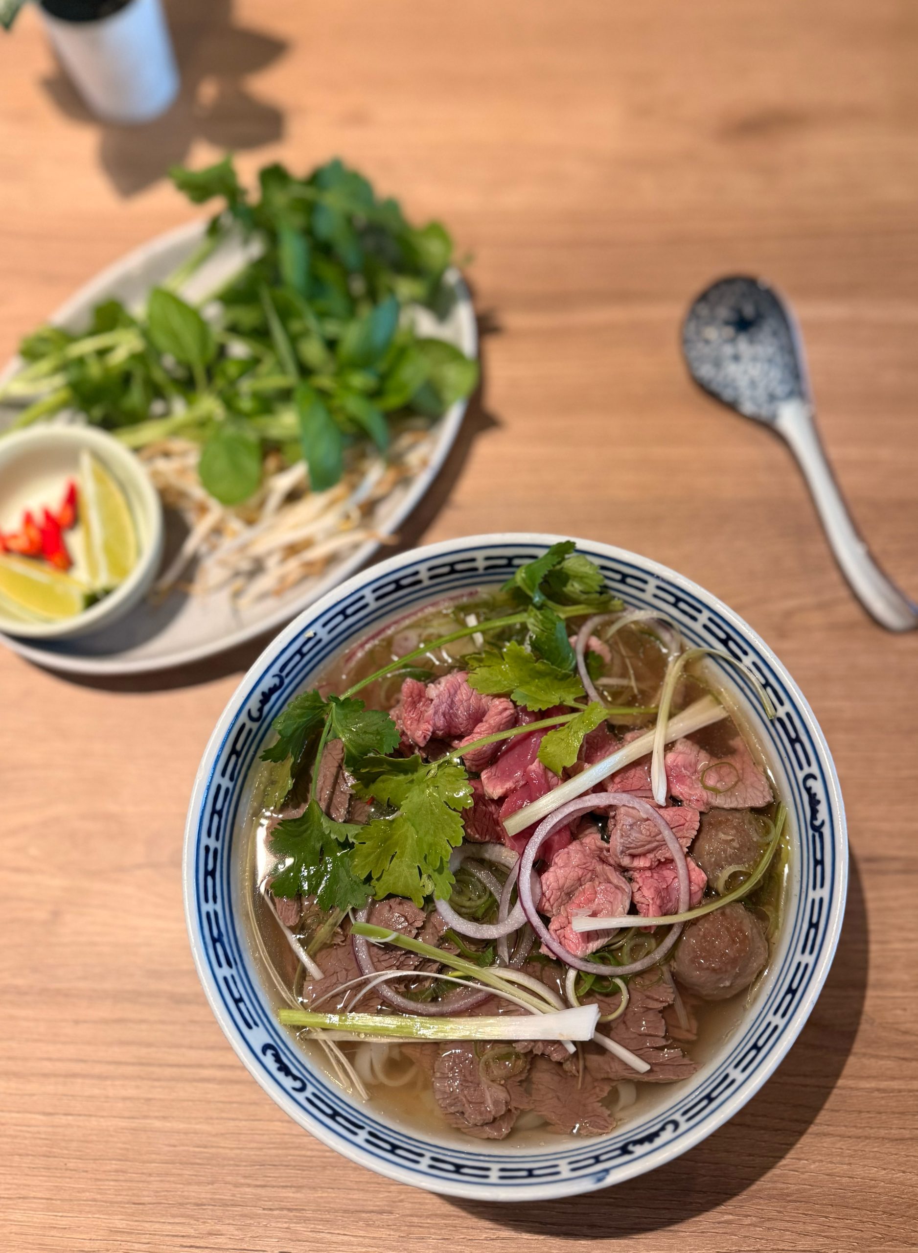 Med lynkogt og kogt oksekød mix/pho with sliced rare beef